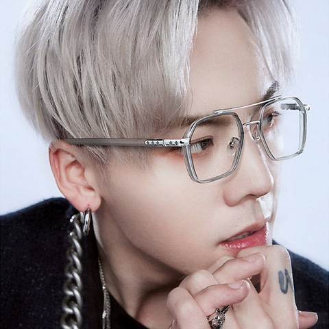 K0039 Retro đôi-cầu lớn Kính mắt Khung thời trang kim cương mô hình chạm khắc siêu nhẹ mát hợp thời trang Kính